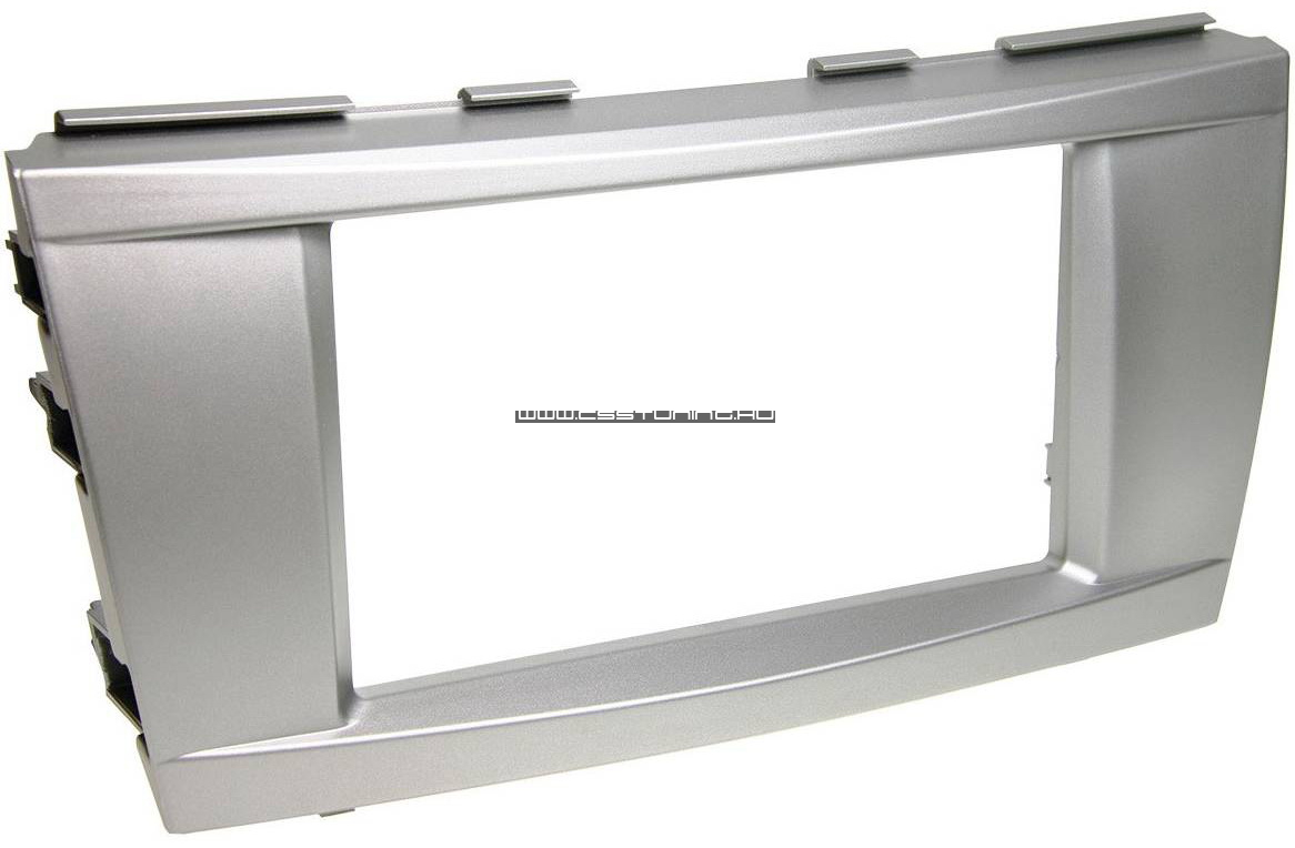 Toyota Camry, V4 ezüst színű 2 DIN autórádió beépítő keret. A beépítő keret átalakítja a gyári rádió, műszerfal kialakítását úgy, hogy lehetővé tegye a gyári rádió cseréjét univerzális szabvány 2 DIN méretű fejegységre.Képek: