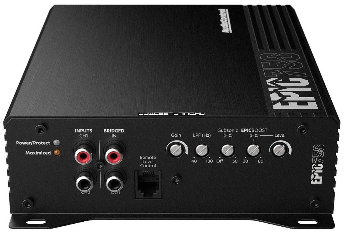 AudioControl EPIC750 mono, 1 csatornás erősítő, 300 / 500 / 750 W RMS. AudioControl prémium kategória, EPIC sorozat: Kompakt és kiváló hőelvezetés, Class D felépítés, 4/2/1 ohm stabil, 750 W összteljesítmény, Bassremote távvezérlő.Képek: